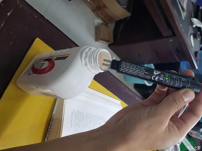 好了,进入正题吧,昨天礼拜六,天气多云,也凉快,换了换刹车油,顺便把四个轮子喷了防锈隔音底盘装甲,说起刹车油呢,多说一句,在京·东买的号称原厂的刹车油,结果回来一测,直接超标,果断淘·宝买的ATE,提醒大家一下,后面有图有真相。