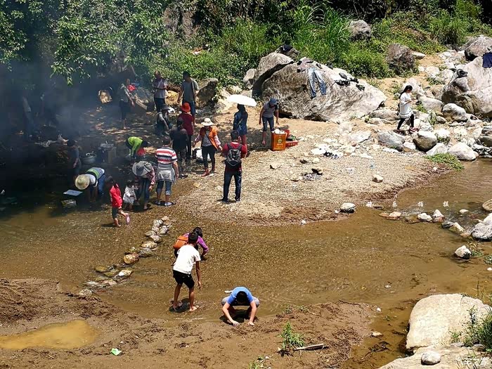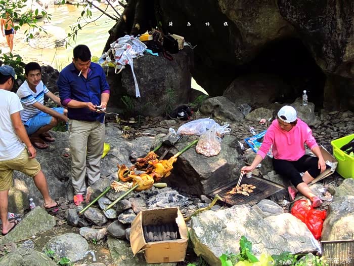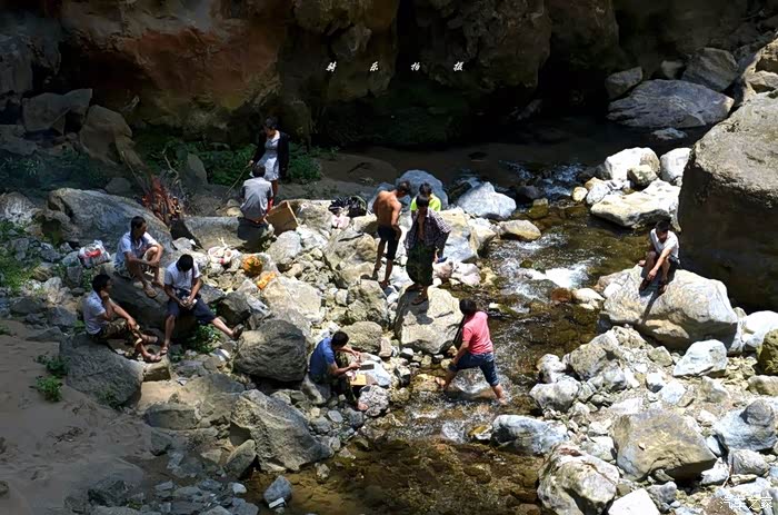 没想到时至中午,游客居然多了起来,我看大部分是前来烧烤野炊的,当然也有在河里捡石头的、戏水的,深潭之处,竟然还有美女游泳呢。