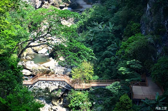 俯首桥下,但见森林茂密,栈桥幽静,溪水潺流。