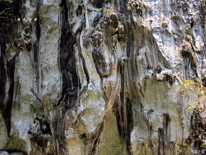 仰望峭壁,更有怪石挂立,恍若崖画,树影摇曳。