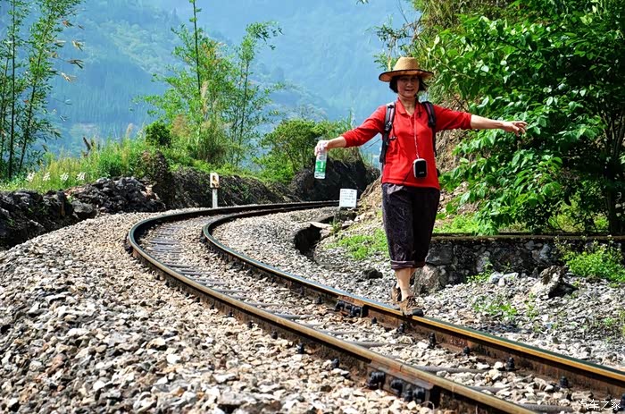 这位倒好,无忧无虑,在铁轨上走起了平衡木。