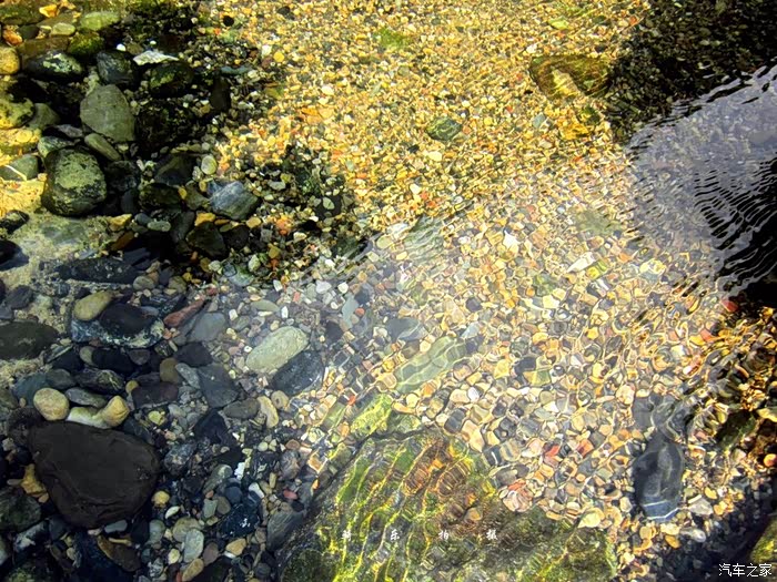 河水清亮透底,毫无杂质,水下的沙石在阳光的照射下,五彩斑斓闪烁耀目。