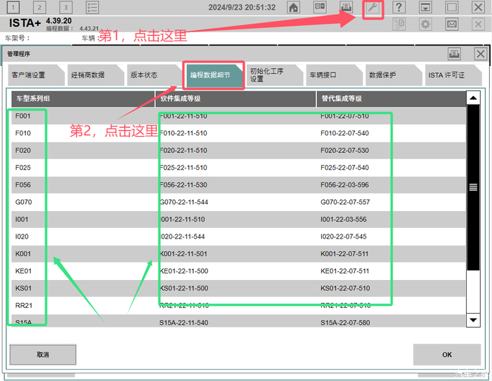 8、此时,我们打开ISTA软件,查看编程数据版本,此图为正常数据