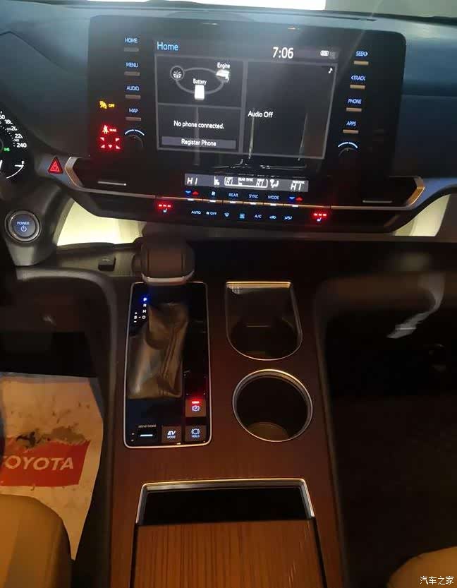 9寸导航屏由老款的镶嵌式,改成了新款的凸起竖屏,支出手机互联功能,21款加版塞纳全系标配前座椅加热和方向盘加热,而美规版则没有方向盘加热。主副驾之间的扶手也和前中控台连成了一体,更倾向于轿车内饰风格,且大面积使用桃木内饰,这个也是全系标配。
