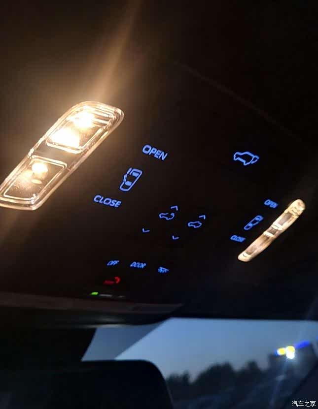 司机位置头顶不仅是阅读灯和天窗的控制键,更有两侧电动门和后尾门的电动控制按键,在司机不下车的情况下,可以将车门打开,方便二排乘客上下车,前提是车辆档位放置在P档。