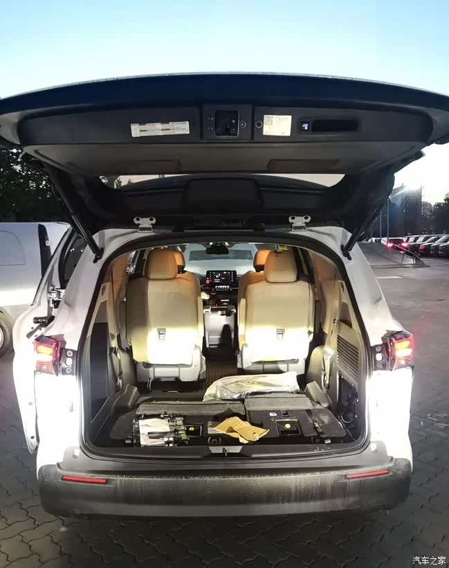 21款塞纳将二排座椅滑动到轨道最前端,再将第三排座椅向下隐藏后,整个车内空间深度可以达到1.9米之深,不仅装货装得更多,而且出门旅游的话,睡在车内也不是不可能。另外电动后尾门LE版是没有的,只有XLE及以上版本才会有。