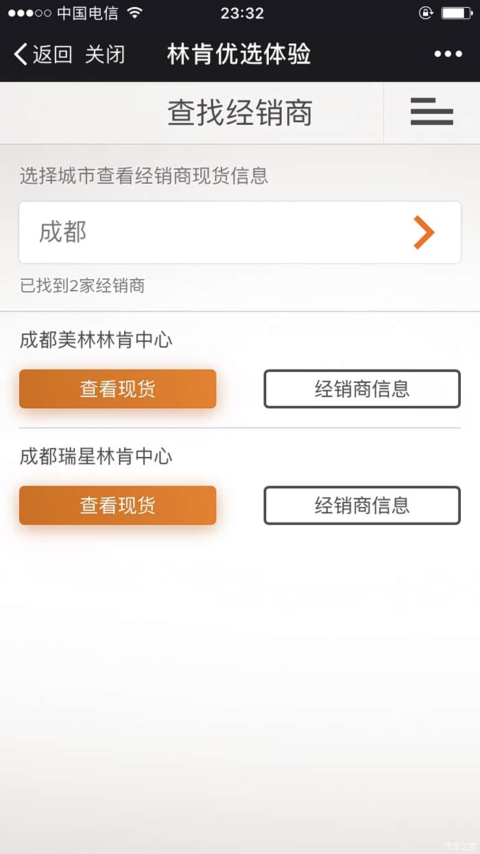 林肯中国的官方微信号(lincoln_in_china)可以查询各地经销商名录和现车状况了。
