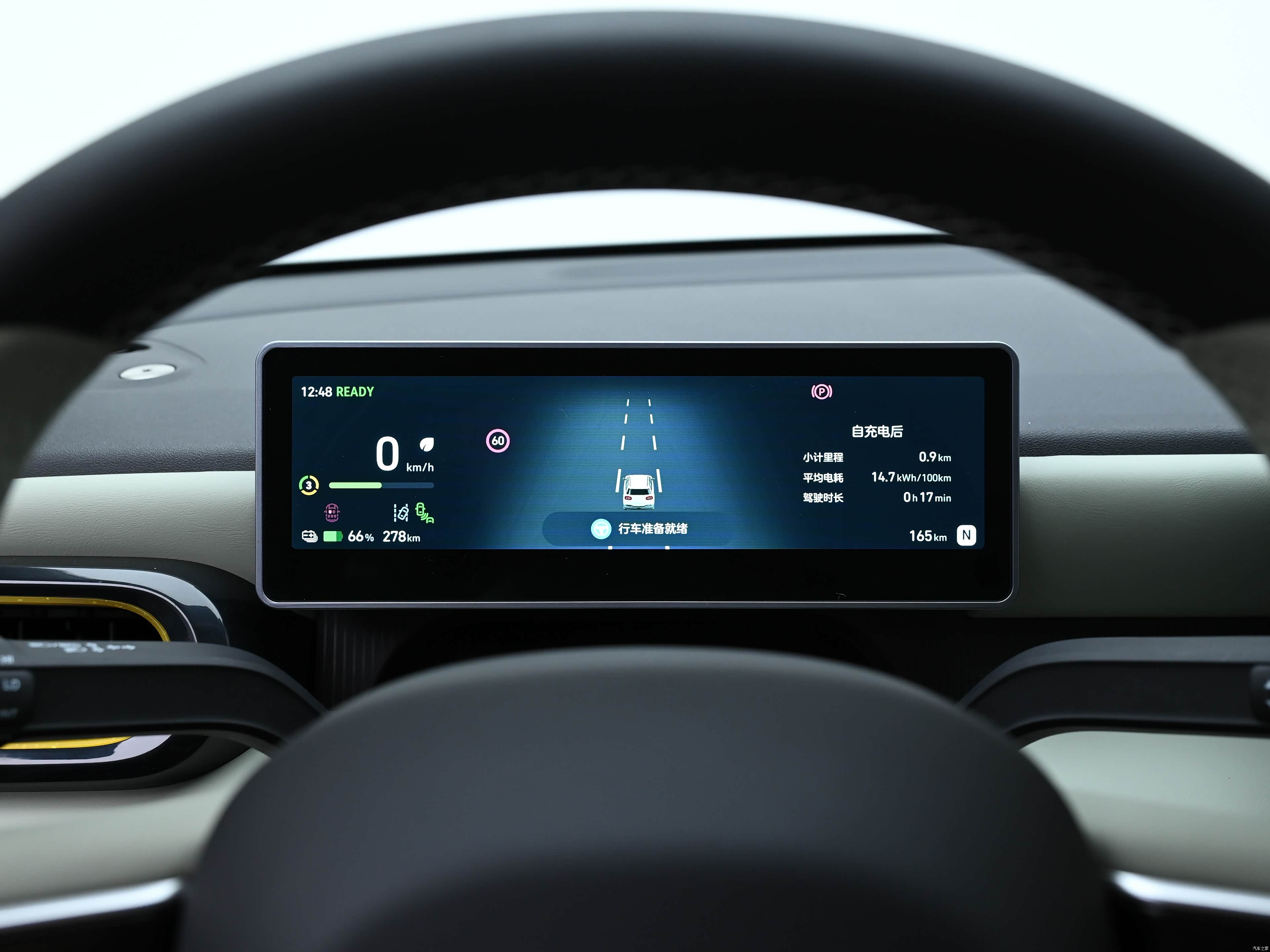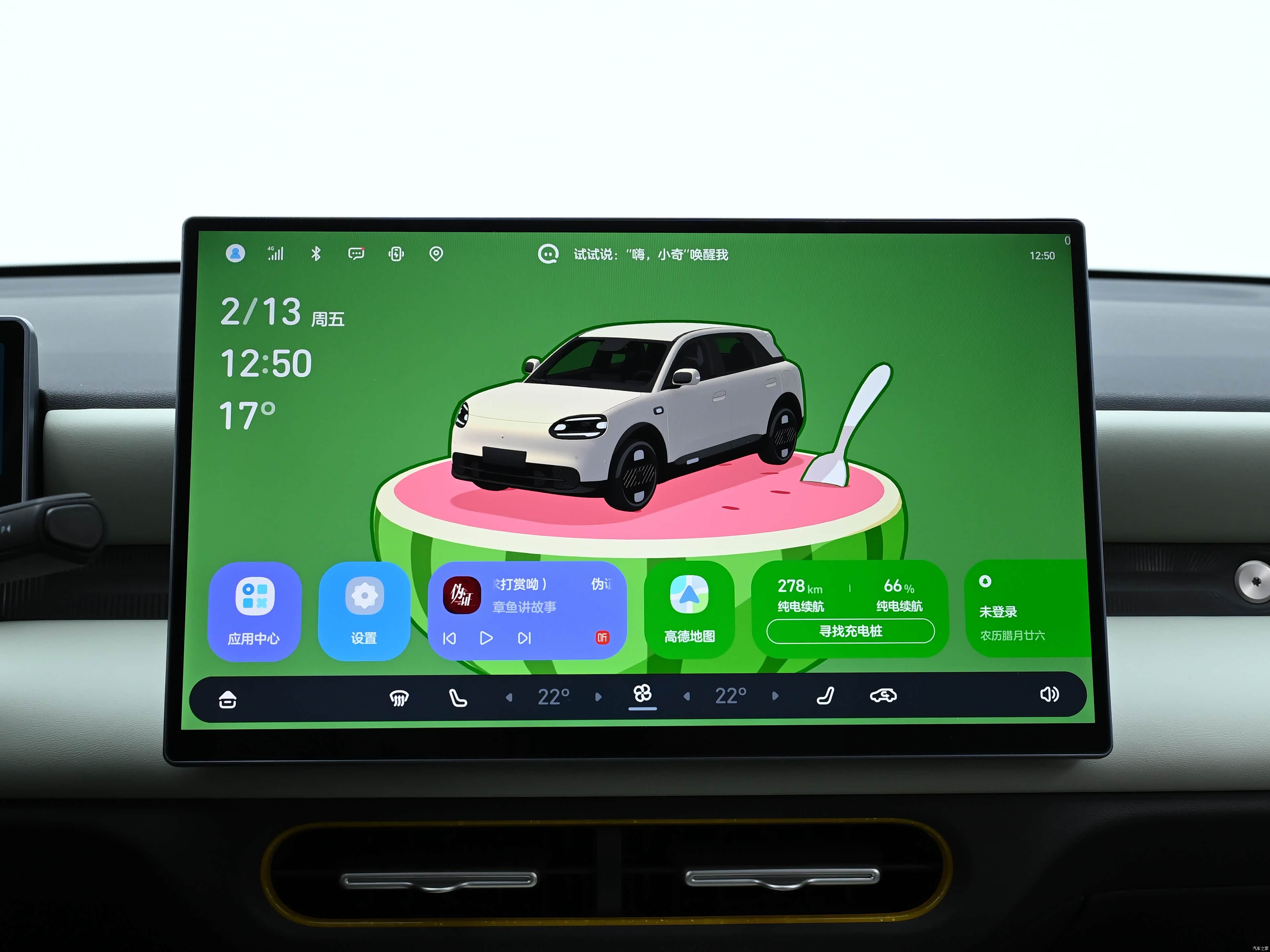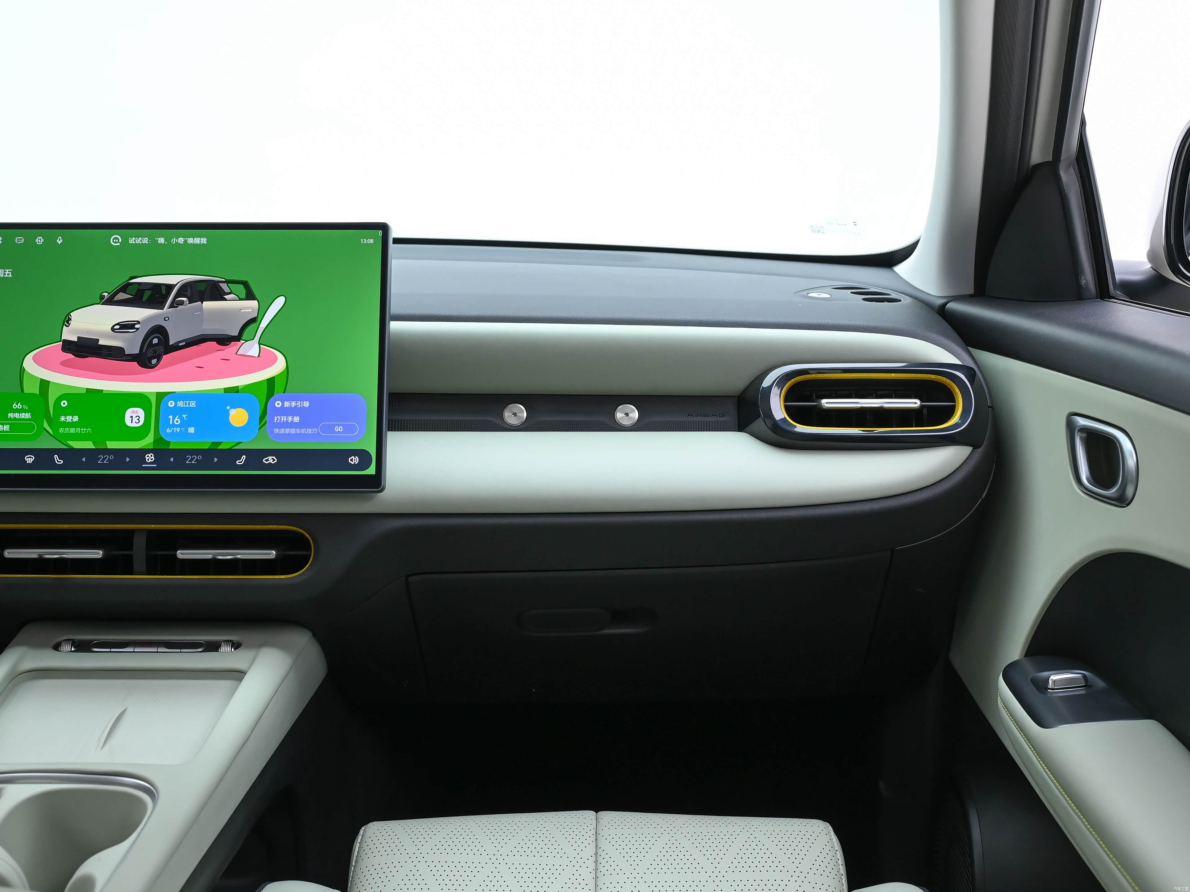 坐进车内,QQ3 EV的内饰直接颠覆了我对入门纯电小车的认知,没有廉价的塑料感,整体设计简洁大气,质感拉满,而且智能化配置直接拉到顶,核心就是这套AI灵犀智舱,这也是它敢叫板同级的核心底气。