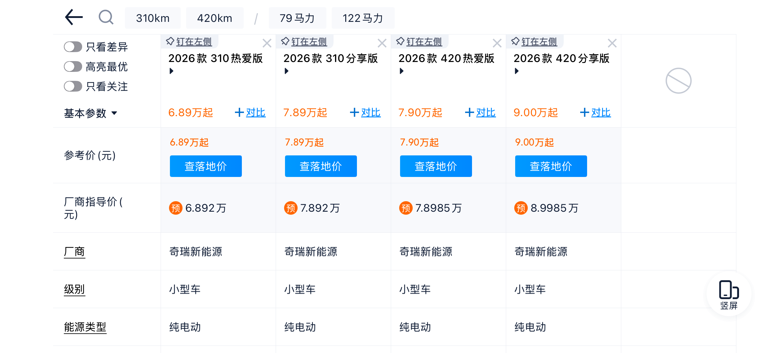 最后说说大家最关心的价格和预售权益,QQ3 EV预售价区间6.8920-8.9985万元,310km版本起步价仅6.89万,420km顶配不到9万,这个价格配上这样的配置,真的太有诚意了。