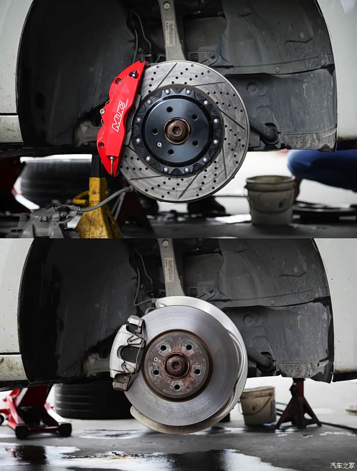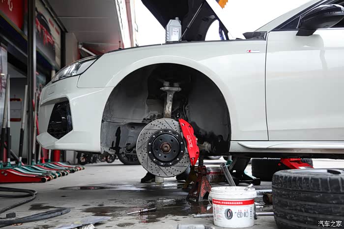 奥迪A4L原厂轮毂改装MUC前轮六活塞刹车卡钳套装