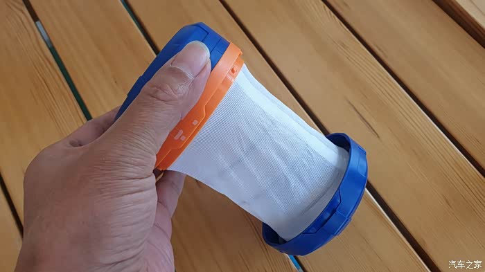 这是汽车之家的一款订制露营灯,它的身材非常小巧,通过折叠可以缩小 体积。如果需要悬挂的时候,还可以打开开关,变成小马灯一样的样子。