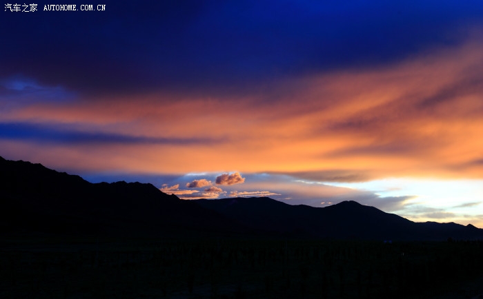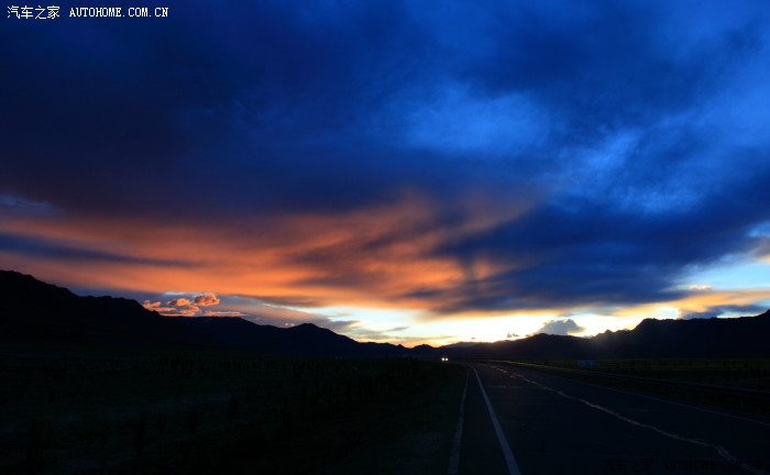 晚上9:00落日余晖映红了天边,我们快要到达日喀则了。