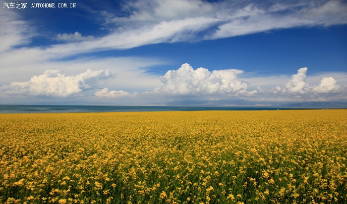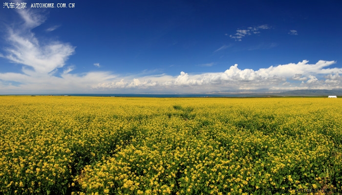 8月青海湖南岸的油菜花正开