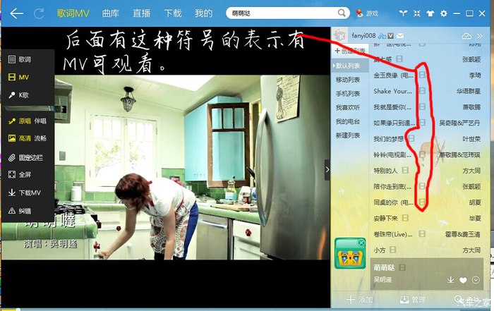 第一步,两个软件都安装好后,先打开酷我音乐盒,找到想要下载的歌曲mv,(并不是所有歌曲都有MV的