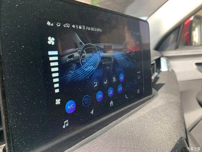 空调出风口,每个外边都会有一层这样镀铬的装饰与车外的设计,也相对来说有那么一点点的呼应,还是不错的,整体的设计感很好。而且在这里着重说一下,就是空调特别特别的凉,也有可能是新车的原因吧,稍微给点就管用
