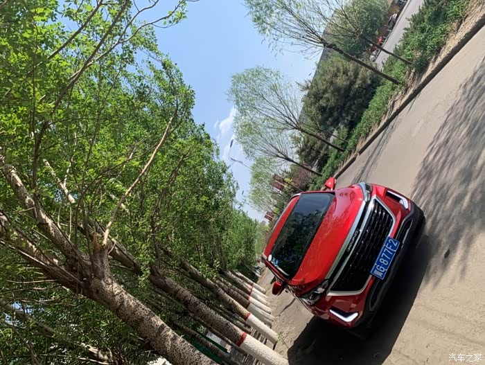小红,停在树底下,还有那么一点显眼呢,相对于周围的绿色来说,嘿,还别说,小红还真是怎么看怎么好看.