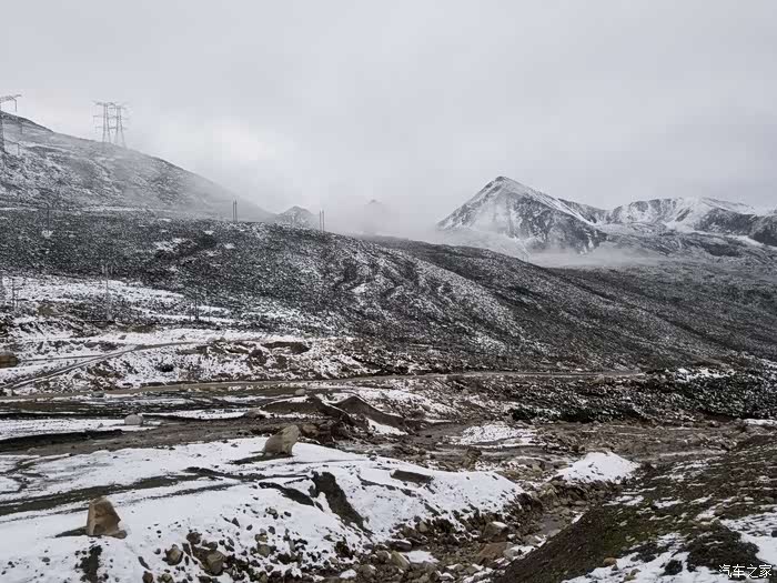 早上摸黑赶路,到了沱沱河,天才微微亮,但是已经开始下雪了,牌照再次结冰,