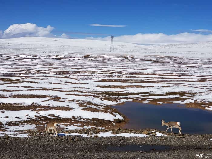 天空放晴,蓝天白云,我们也能一睹可可西里银装素裹的一面,真是太壮观太漂亮了,可可西里的野生藏羚羊挺多了,很容易就可以看到,野牦牛和野驴就少些,不过都遇到了。