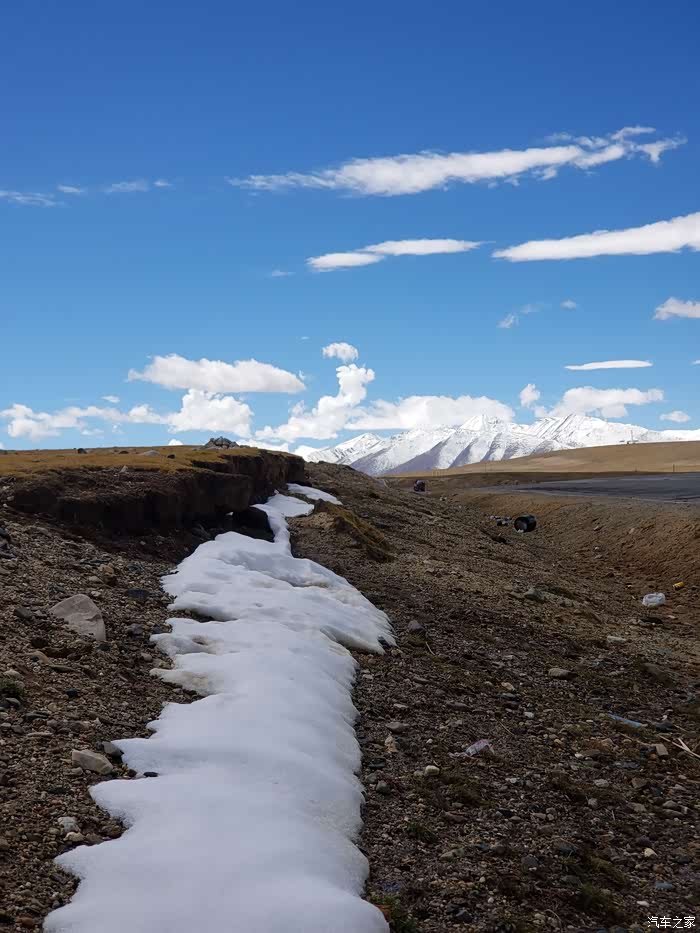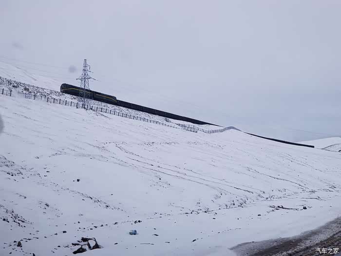 积雪是越来越多,路面也不如之前好开了。这就是冻土上修建的天路。