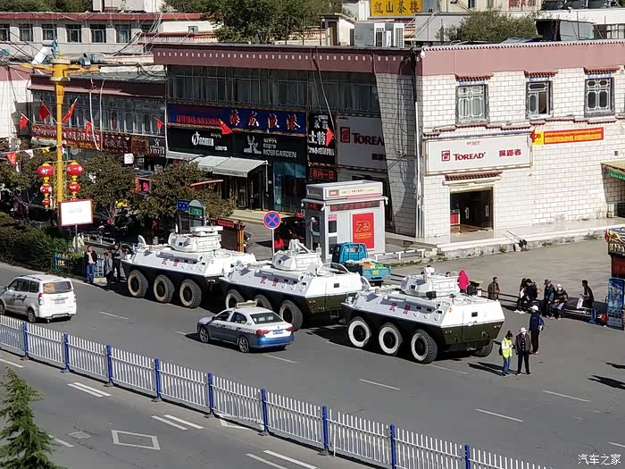 西大滩驻训基地。临时交通管制,为驻训归来的军队让行,向我们最可爱的人致敬,