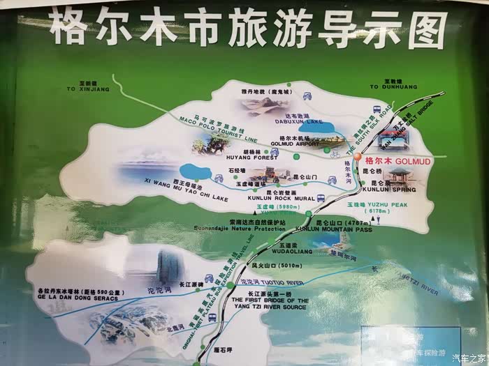 还好昨天赶到了雁石坪镇,把今天的行程从830公里压缩到了506公里,而且我们今天早上六点不到就出发了,即便如此,今天浏览了沿途的景点后,赶到格尔木市也是晚上八点了,天已经开始黑了,幸运的是格尔木的海拔已经降到了2800米左右,不用担心高反了,我不敢想如果按常规行程,一天从那曲到格尔木830公里会是什么状况。