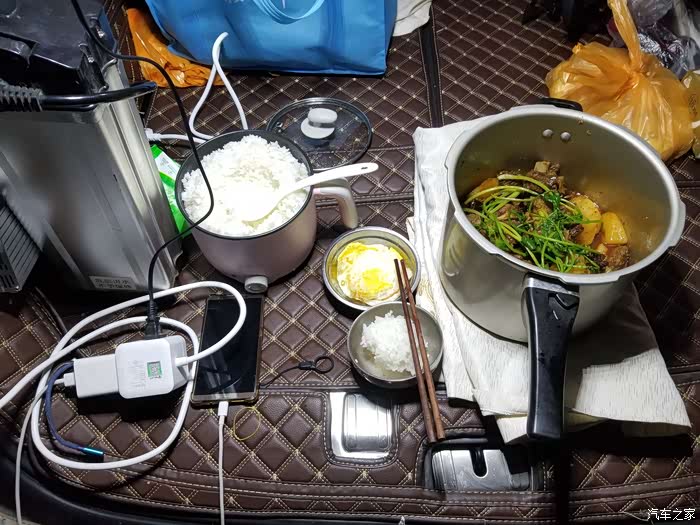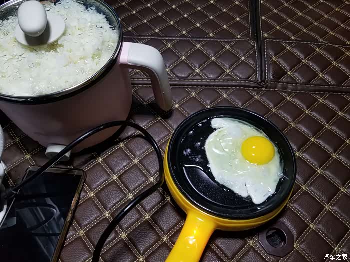 在服务区,自己煎蛋吃,这个煎蛋器还真不错,功率不大,逆变器可以轻松带动,煎蛋快,