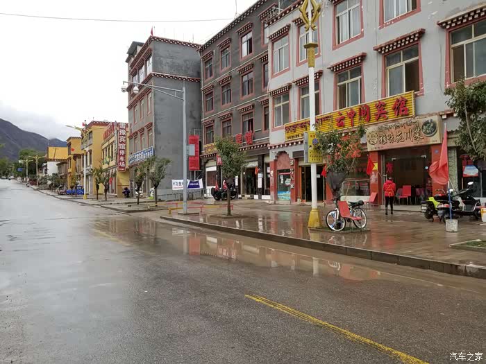 雅江县城所在地是位于雅砻江河谷中的河口镇,城区总面积仅有0.5平方公里,只有一条双车道的主街道,空间异常狭小。在这里开车的话,根本无法错车,一旦两车相遇了,有一辆车就需要开到街道尽头才能掉头。