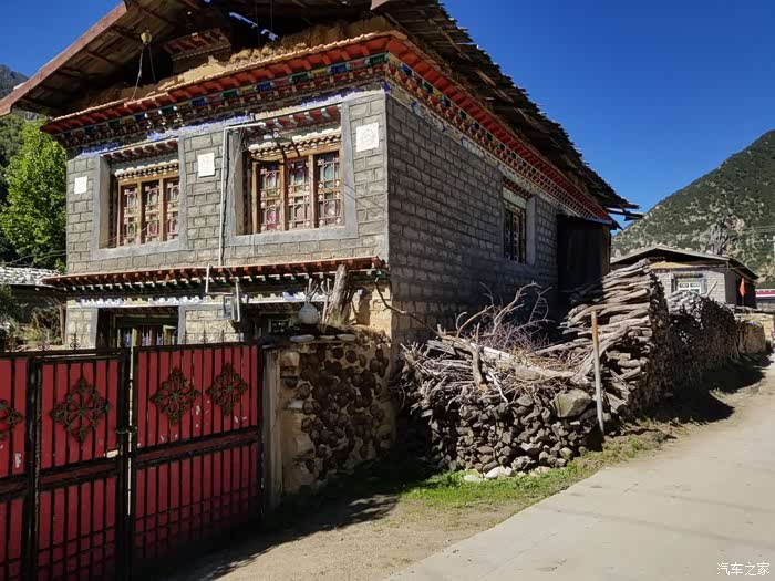 然而,过去这里地震频繁,人们纷纷搬离下山去了康定,现在只剩下二三十家,而且,这里的人们修建了一种特别的抗震房屋,下半截是是石墙,上办截是木顶。