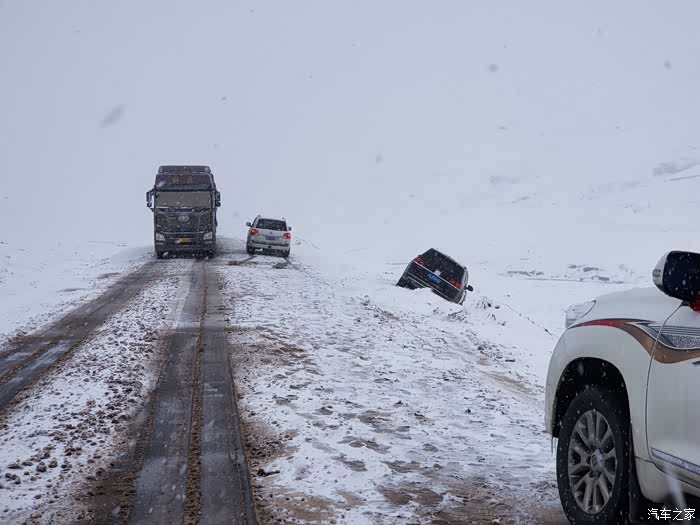 眼看着前面的黑色SUV为了避让大货车,滑到了坎下,吓得我们也不敢走了。