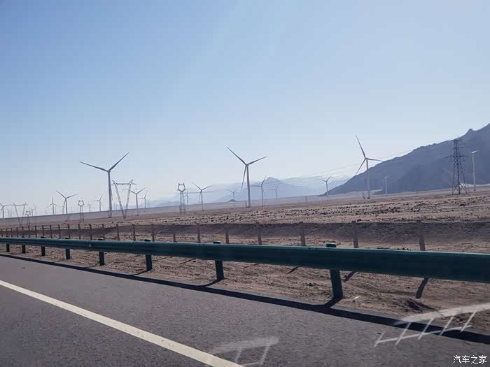 上午从格尔木出发,沿着京藏高速,沿途200公里除了风车发电就没有什么景色可言,车的右边是连绵不断昆仑山山系的布尔汗布达山,左边是一望无际的戈壁。路牌上都是汉语英语藏语蒙古语四种语言,中午本来说在高速服务区解决午饭,无奈连过两个服务区都不提供餐饮,只好在“伊克高里”这个地方下道找饭吃,