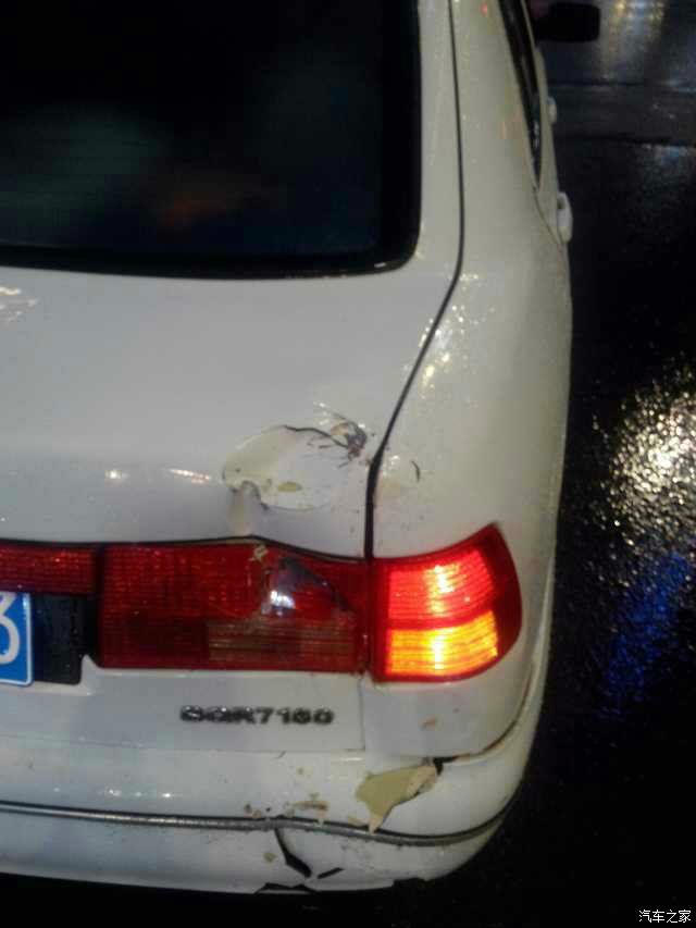 我去。。。刚准备起步,猛烈的撞击让我当时都没回过神来是被追尾了,毕竟是第一次。回过神来才意识到撞车了,先问问后座人员有没有事,都说没事,真是庆幸!然后就想着,惨了,这撞击力度,可能三厢都成两厢车了。结果看了看。其实这伤真不算什么,应了我哥哥的话风云4代钣金绝对不错!哈哈。不好意思,凑合着看看!