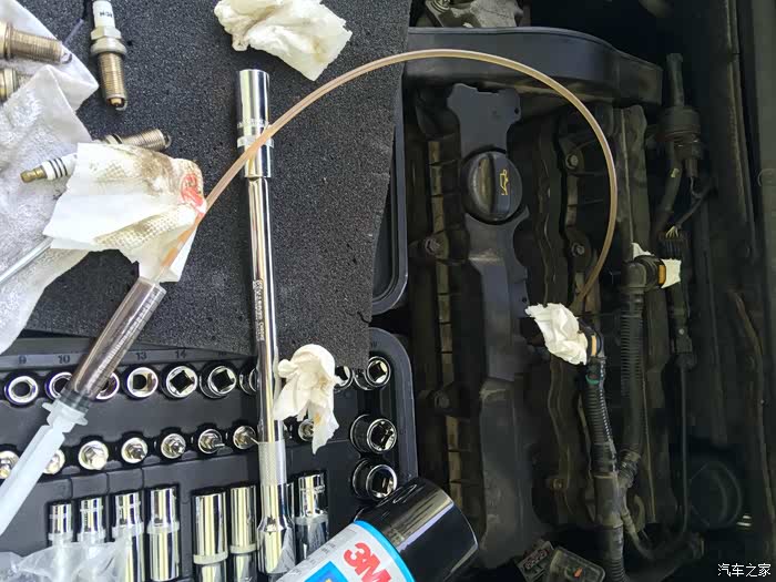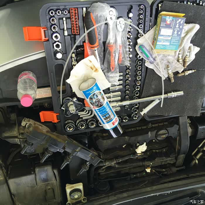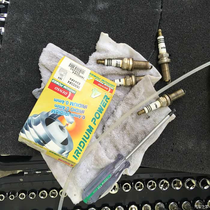 这是之前清洗燃烧室、更换火花塞的照片,买了一套NGK,一套电装,大约跑个两三万就换下来清洗干净,然后装上另一套洗过的,电装适合市区,低速扭矩大,NGK高转速后劲大,噪音比电装的略大,油耗基本没差别,都比原车要小一点点。
