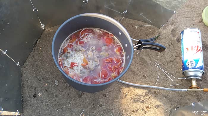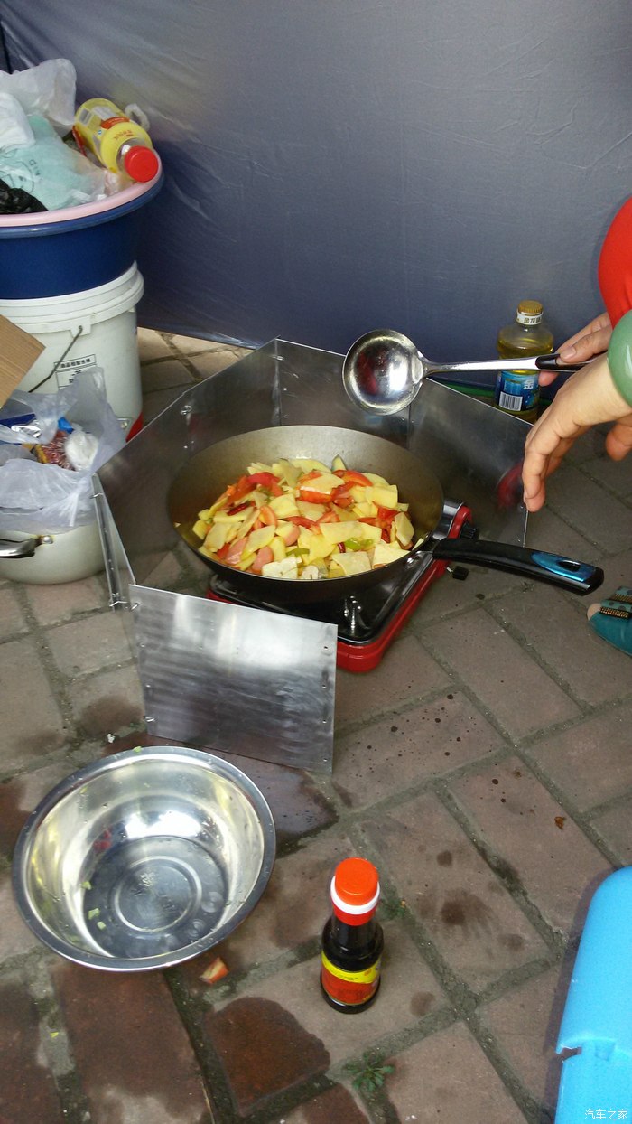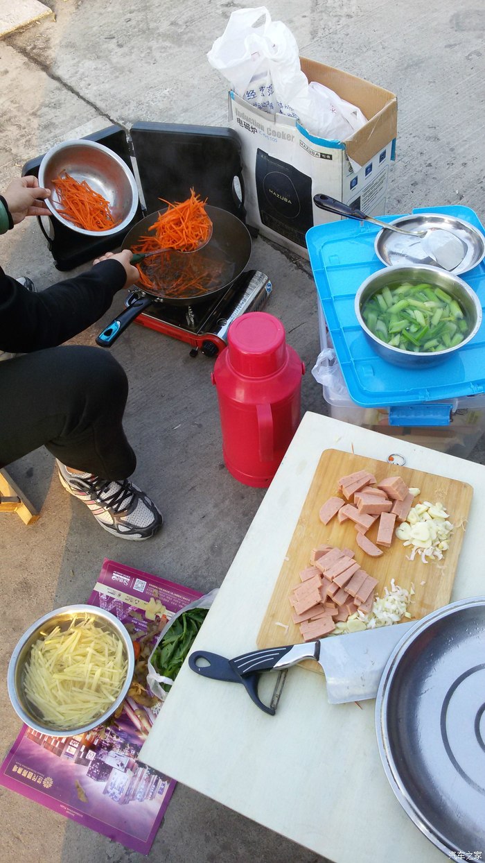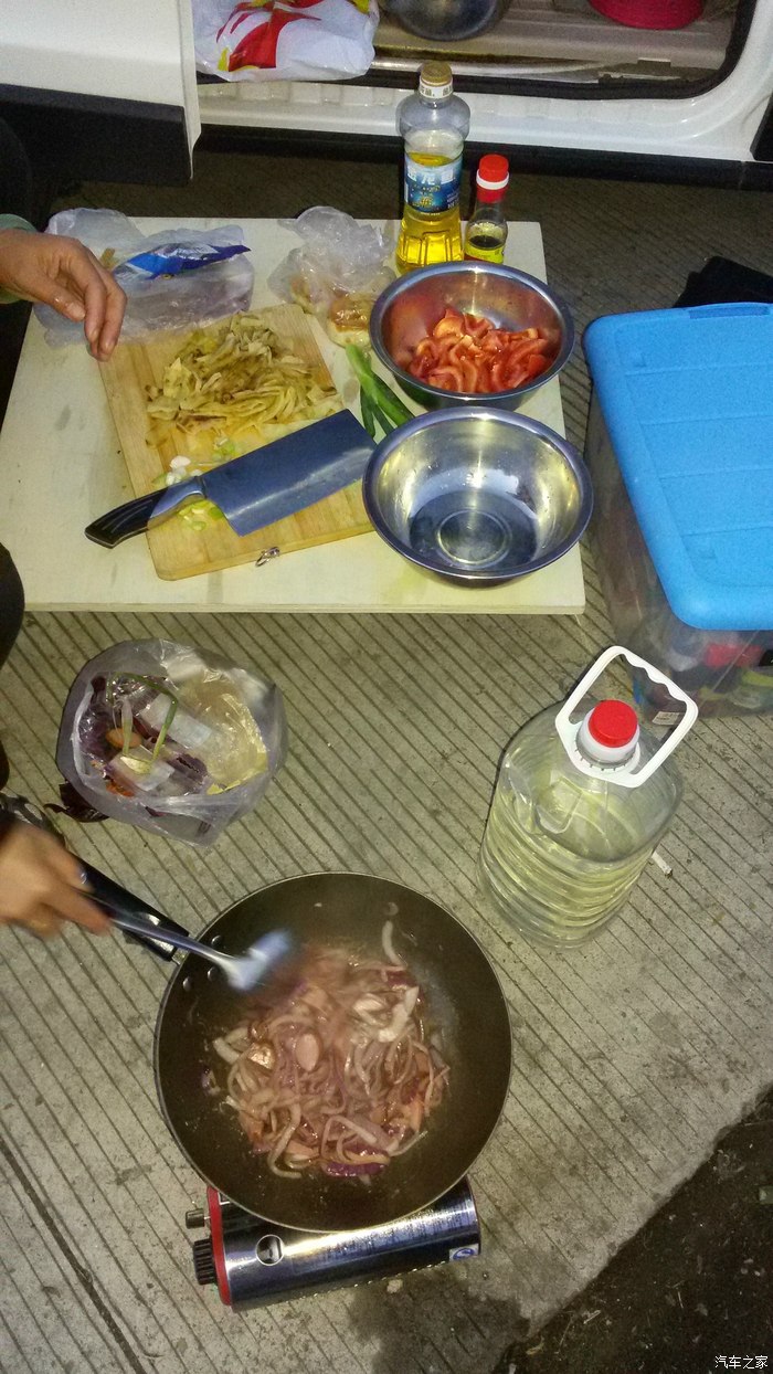 停车用卡式炉炒菜,做到旅行中不下馆子不住店。