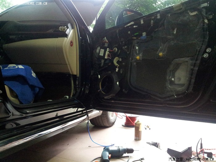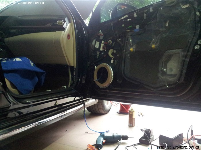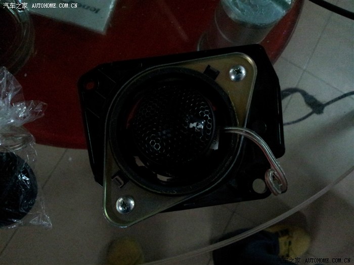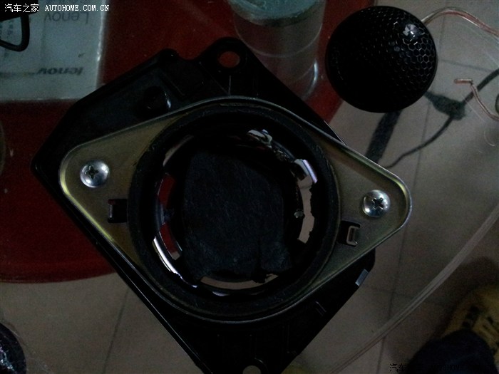 这个是拆出来的原车高音喇叭,挖了一个孔,打算把豪客的高音喇叭装进去,再固定。