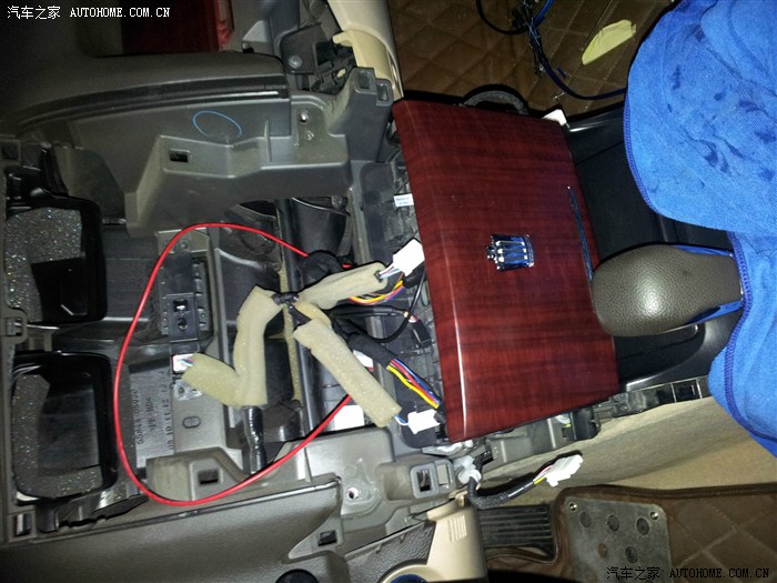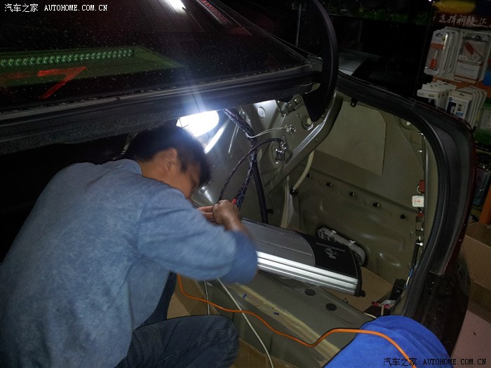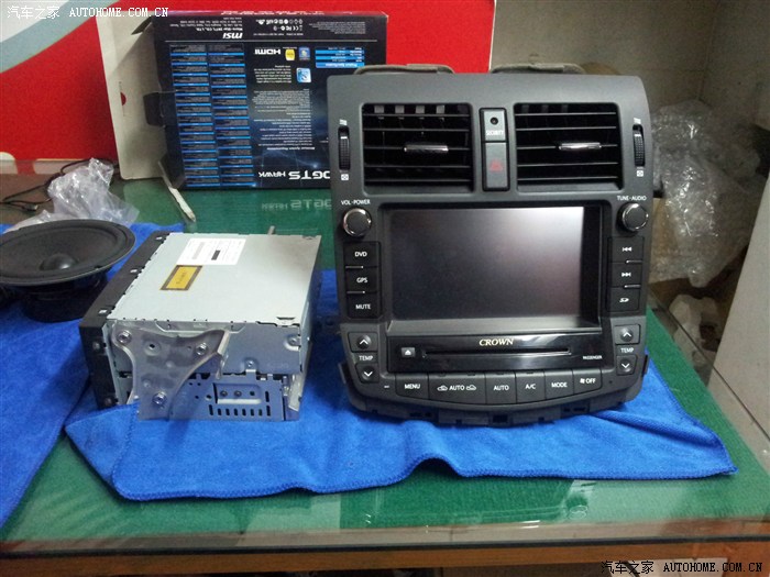 开始装功放了,装在皇冠车高配才有功放的功放位,大小刚好。