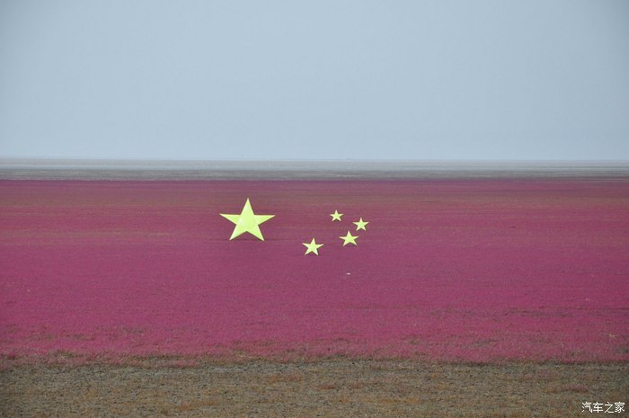 到了九月,碱蓬草完全红起来,这里就是一面五星红旗
