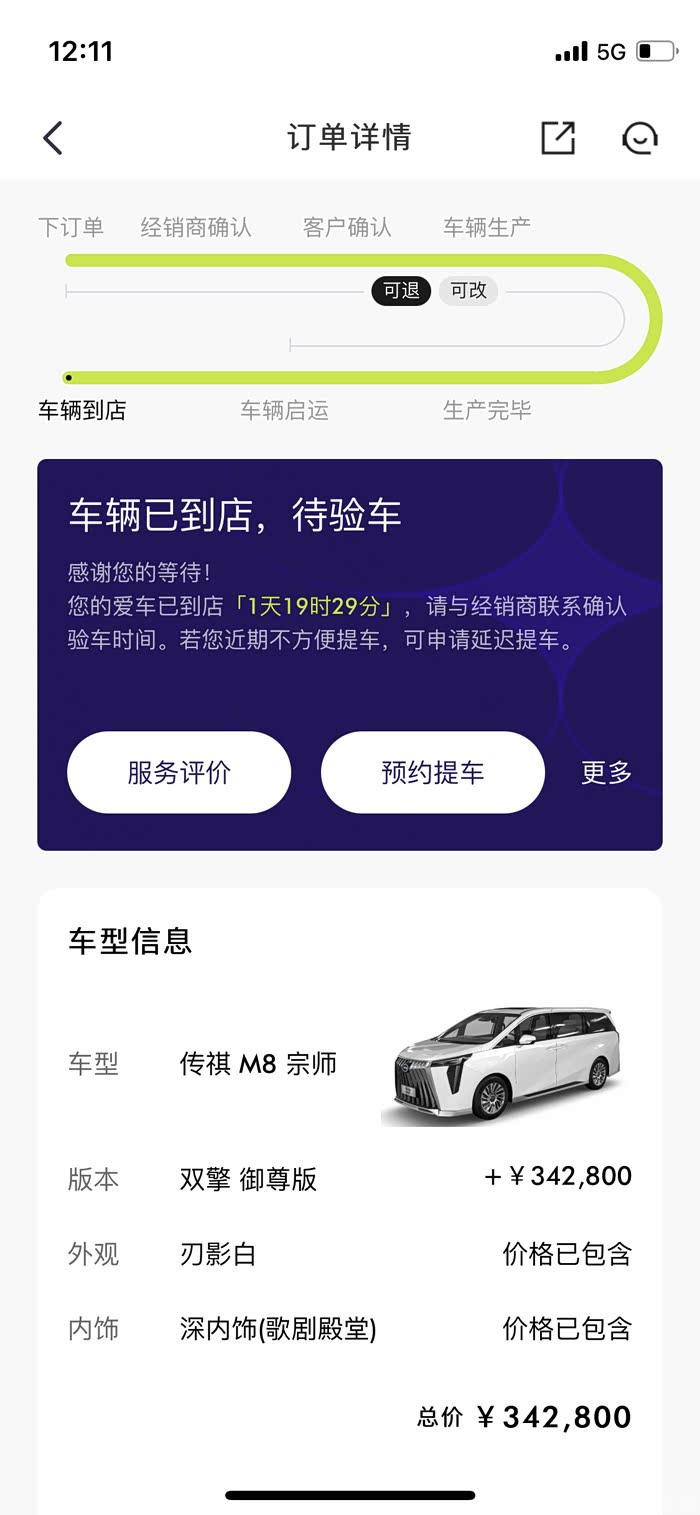 晚上回去后家人不建议我买这车太大了,本来买这车也是想带这一家子出去自驾游方便,但买车高兴的事情弄的家里不开心没必要。重点来了。第二天23号下午我微信通知销售说车子我暂时不买了先把我订金退给我。销售一句话把我气懵了,订金退不了。订金不是我店里收到,是集团APP收的钱。本来APP付了订金,我自己手机有退款通道按钮,但是当地经销商暗地里骚操作,我付订金当天,在APP上把订车-提交订单给厂家-厂家按订单排交期-再生产汽车-再物流运输-最后才新车到店。等我第二天23号要APP退订金时,显示我已经到最后一部交车了。