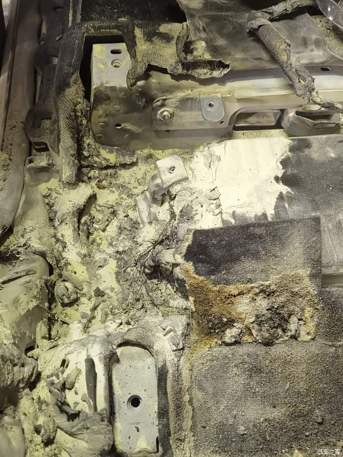 图上那个格栅就是48v电池的右侧格栅,左侧的已经烧没了,风是右进左出,所以起火的火苗会串的特别快