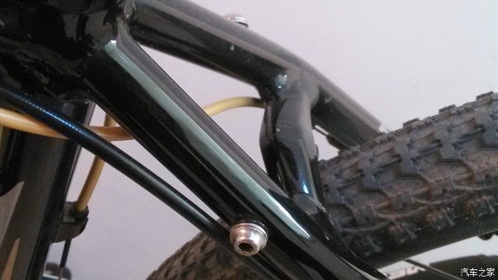 车架外走线,使用中没有什么问题,就是上下楼抬车子抓手不方面,有点影响。