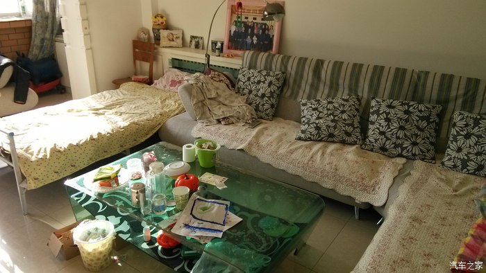 在家里客厅支了一张床,这是偶尔起床活动时拍的。