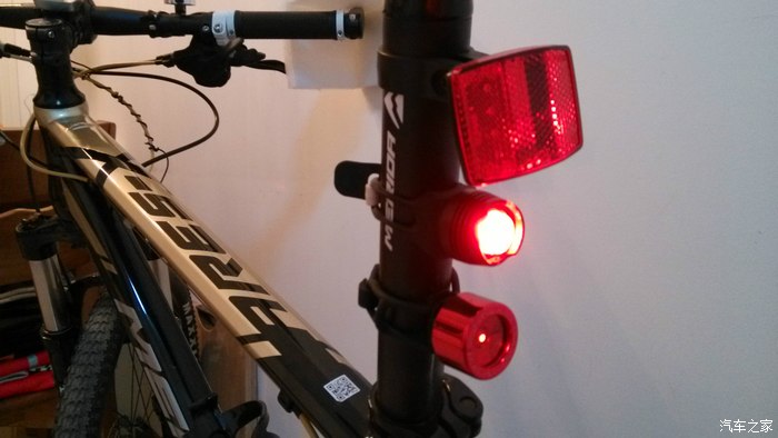 后灯,最上面灯是车子自带的。中间那个一般,最下面的夜间非常亮,显示距离远。