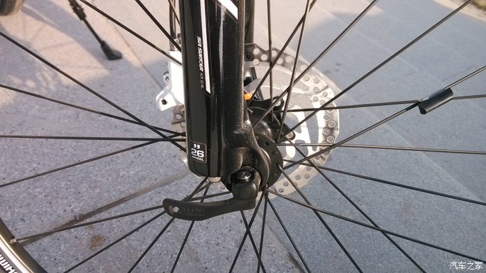 前轮的快拆手柄,以我目前学习的知识判断,这个装反了,应该装到碟刹碟片那一侧。