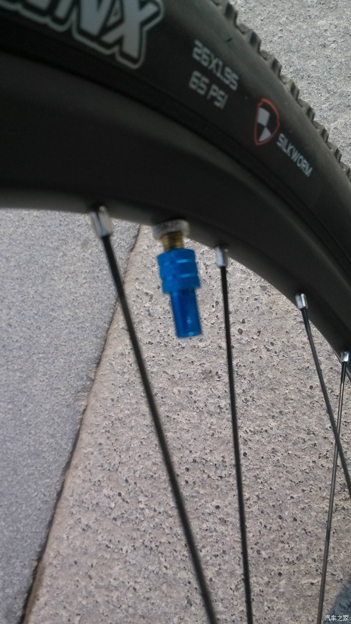 这就是我前面说的那个“充气转换嘴”,反正是这样直接可以用汽车轮胎充气机补充胎压,而且自认为很好看。