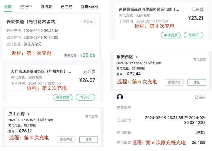 途中共充电9次,用油行驶200Km左右,全程以用电为主,全程充电不用排队,但充电均价在1.3元/度以上;