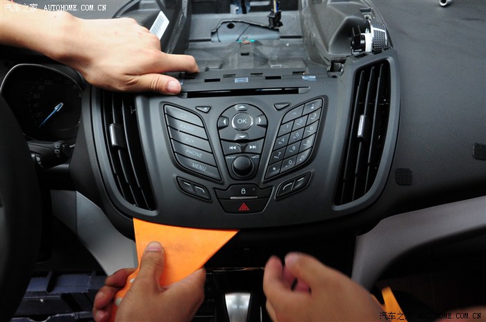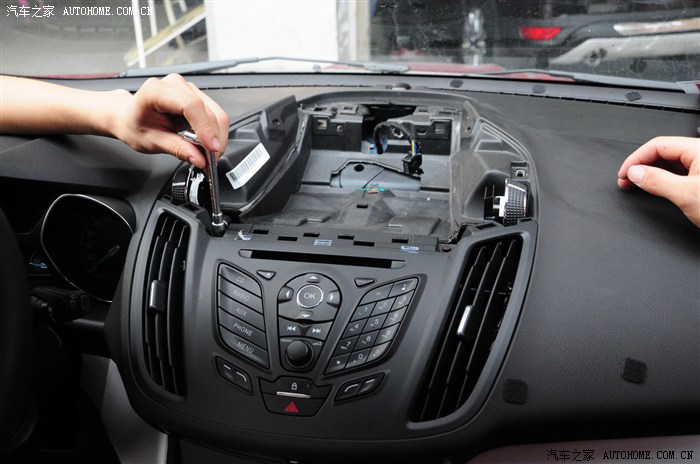 接下来从原有的中控按键中控拆下出风口,出风口再配到飞歌的中控屏幕框架上!如下图: