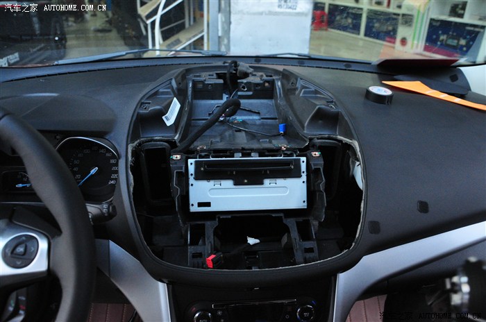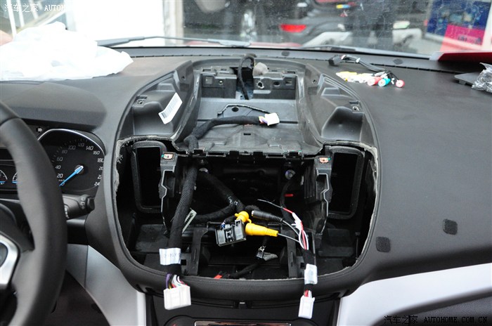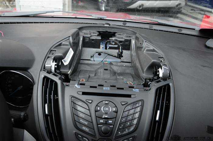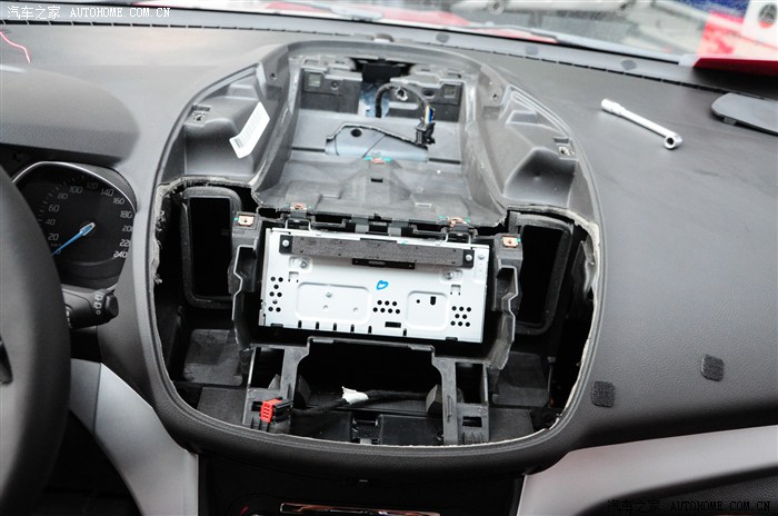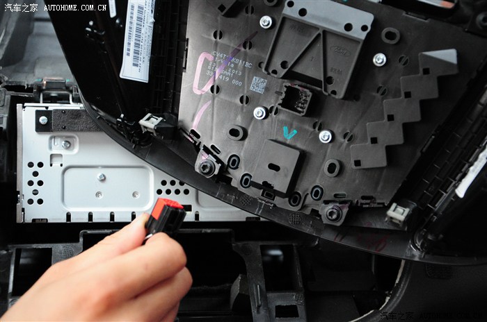 这里为了安装更简便要狠一点,在中控挖一个可以直接引线的孔,当然如果不想挖的车友们可以通过后面的孔穿上来,拉线时会费劲一些,这里不影响使用的,放心!如下图: