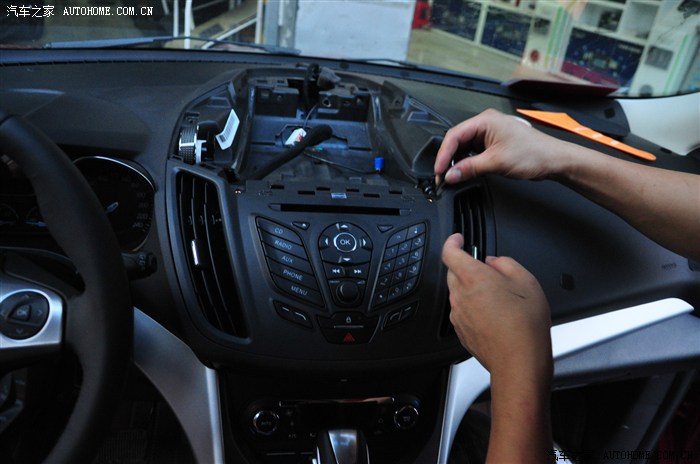 7.用塑胶撬板工具沿原车音响按键面板边缘撬