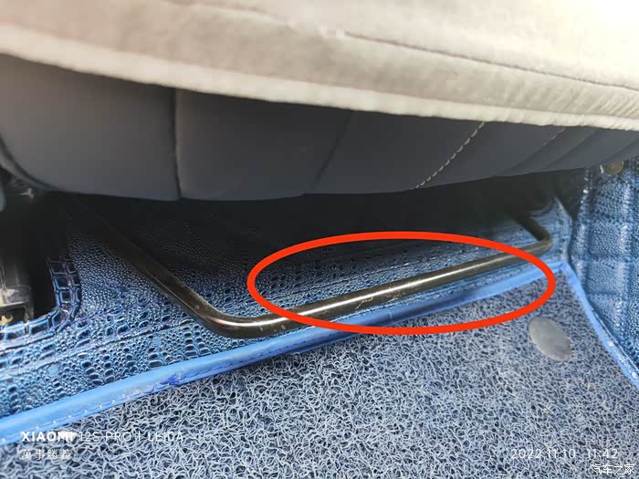 向上拉动副驾座椅下红色圈内拉杆,可以前后调节副驾座椅前后位置,副驾座椅不支持高低调节。