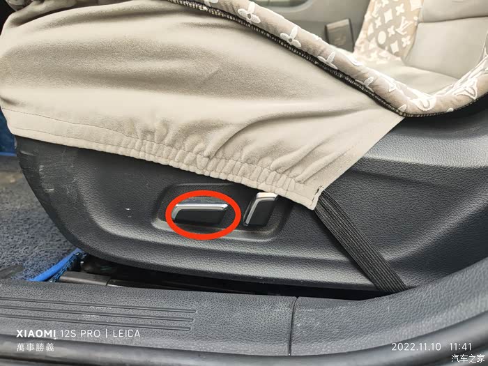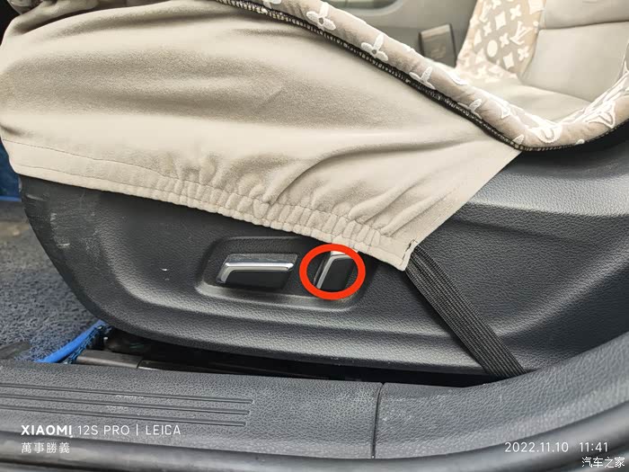 图中红色圈内按钮可以调节前后上下四个方向主驾座椅,主驾座椅配有特殊的座椅迎宾功能,打开车门主驾座椅自动后移,配合主驾车门迎宾灯满满的仪式感。