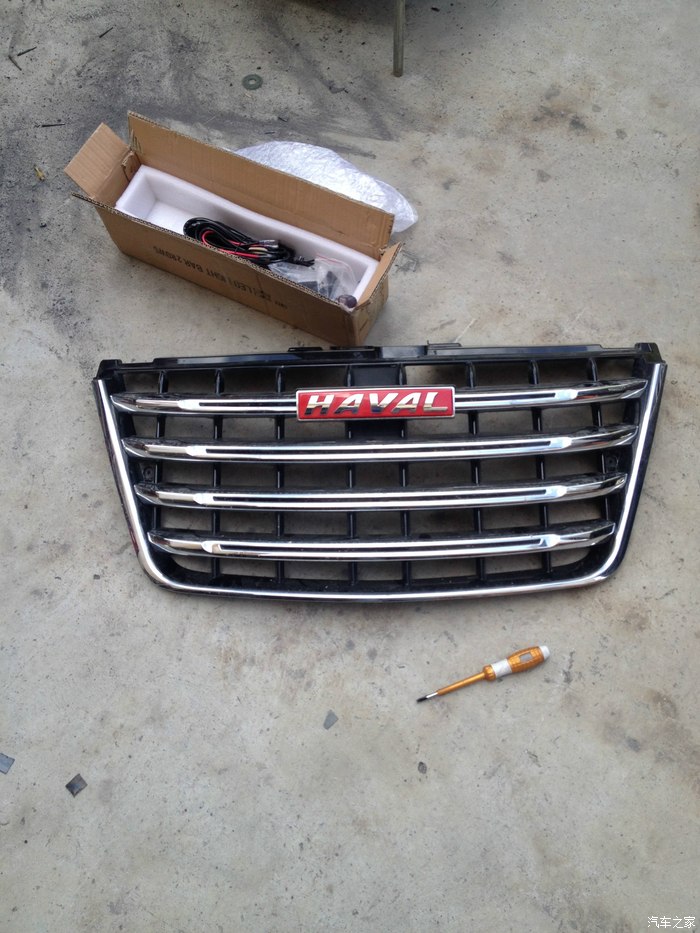 之前在坛子里面看到有车友在中网里面安装双排的LED射灯,看了效果之后感觉不错,貌似这种就是我想要的效果。但是他们安装的都是双排的LED灯,总感觉双排的安装进去会被中网挡掉一排的灯光。所以这次自己就在T宝上面选择进口CREE长条单排LED射灯80W的。射灯加开关线组再加上安装费用430块钱。(自己纯手工安装,制作射灯固定支架,所以安装费只有10元钱。10元钱都是借用别人的工具和做支架的材料来的)